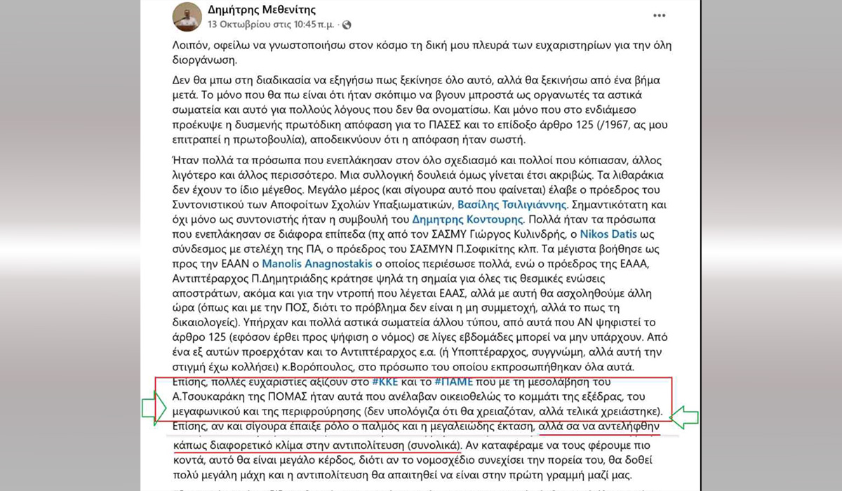 Η δημόσια «ευχαριστία», που διαβάσαμε, προς πολιτικά κόμματα και η αναφορά σε «ομάδες περιφρούρησης» από πολιτικές οργανώσεις, εκθέτουν όσους τις αποδέχθηκαν και προσβάλλουν τον θεσμό που όλοι υπηρετούμε ( φωτό )
