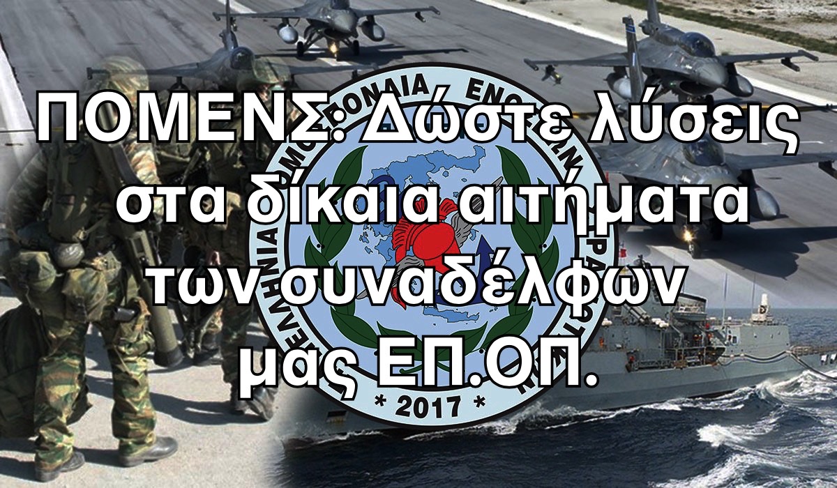 2. Προς μεγάλη μας απογοήτευση διανύοντας ήδη το 2022, μετά από δύο (2) έτη και πλέον συνεχών ενεργειών της Γραμματείας ΕΠΟΠ και της ΠΟΜΕΝΣ όπου αναδεικνύουν με έγγραφά τους τα πολύ σοβαρά προβλήματα που απασχολούν το θεσμό των ΕΠΟΠ, καταθέτοντας προτάσεις προς την Πολιτική και Στρατιωτική Ηγεσία του ΥΠΕΘΑ , παρατηρούμε ότι ο κος ΥΕΘΑ δεν ενστερνίζεται την αγωνία και την αβεβαιότητα που διέπει τα στελέχη του θεσμού ΕΠΟΠ και των οικογενειών τους, όπου διανύουν ήδη τα 20 έτη υπηρεσίας πολλοί εξ αυτών σε ηλικία 47 ετών, πολύ κοντά δηλαδή στο επίμαχο όριο των 50 ετών όπου σύμφωνα με τα ηλικιακά όρια του Ν.445/1974 άρθρο 39 εξαναγκάζονται σε έξοδο από τις Ένοπλες Δυνάμεις αφού αποστρατεύονται σε ηλικία μόλις 50 ετών.